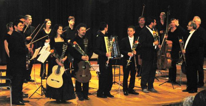 Venons-en au dessert ! On ne conçoit pas un Festival de la guitare sans jouer du Piazzolla. C’est avec l’accordéoniste Nadio Marenco et notre Versoisien connu Alessio Nebiolo guitariste, sous l’égide d’un orchestre bien rôdé que l’on entendit ce double concerto. Musique diversifiée par des sonorités parfois discordantes, des tempos saccadés, rythmés par des frappes sur le bois de la guitare, et des mélodies plus classiques, plus dansantes, le tout bien emballé par la vigueur de l’orchestre traduisit toute la fiesta espagnole. Grandiose final très applaudi.