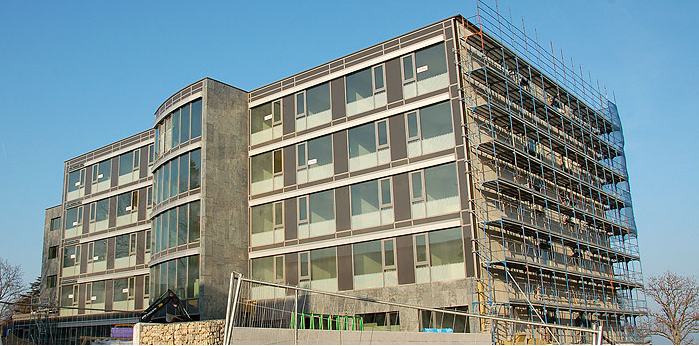 La construction de ce qui sera l'un des plus grand bâtiments de Versoix est achevée. L'EMS de St-Loup s'ouvrira aux résidents dès le 4 avril prochain. Ce deuxième établissement médico spécialisé pour personnes âgée offrira à Versoix 80 chambres supplémentaires pour autant de pensionnaires. Le site est particulièrement attrayant avec la moitié des chambres offrant une vue splendide sur le lac. Tout le personnel nécessaire est maintenant engagé et la moitié des pensionnaires sont déjà inscrits. auteur : Pierre Dupanloup