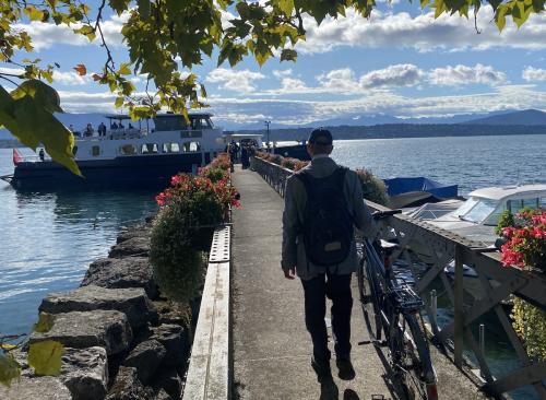 En attendant de monter à bord, avec ou sans vélo, à Port Saladin, l’embarcadère de Bellevue - avec ses buvettes accueillantes, ses commerces, sa vue sur le Mont-Blanc - voici un petit inventaire des traversées lacustres actuelles « D’une rive à l’autre » sur le Léman !