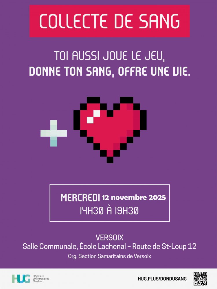 Organisée par les HUG et les Samaritains de Versoix. hug.plus/dondusang