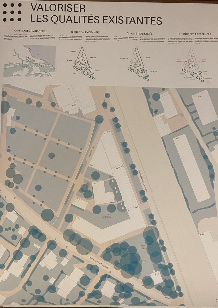 A partir de là, un groupe d’une dizaine de personnes issues de cette concertation a été constitué en 2024 pour développer sur ces bases une nouvelle révision du PLQ et l’élaboration en 2025 d’un avant-projet présenté par M. Oscar Gentiel, architecte urbaniste (mandataire).