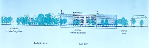 Un premier PLQ (27807) adopté en 1987 concerne la pointe nord du triangle et la construction de l’immeuble Rotschild (5 étages sur rez + attique).