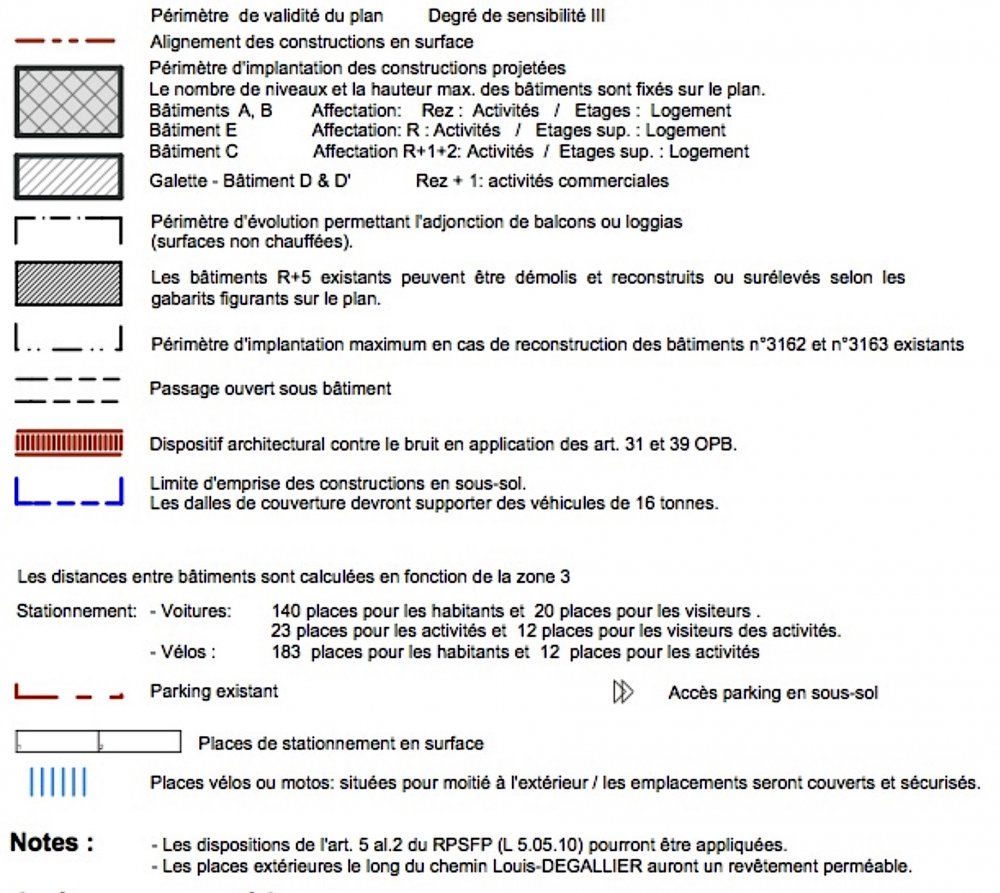 Il faut également tenir compte des projets connexes de la quantité d’arbres, les cheminements la qualité paysagère, la perméabilité des sols, les voiries, la mobilité, cour intérieure collective, le parc public, l’accès les garages et les stationnements. A cela s’ajoutent l’élévation des bâtiments calée sur le bâtiment existant et la mixité des affectations de logements.