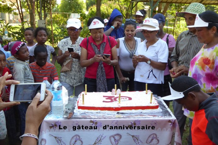 Depuis 30 ans, les Amis des Familles et des Ecoles de Madagascar (AFEM) soutiennent la scolarisation d'enfants vivant à Anosizato Andrefana, une banlieue de Tananarive, la capitale de ce pays-île à situé à l'est de l'Afrique. Naturellement, les activités de cette association ont évolué au cours des trois décennies, toujours dans le but de permettre une scolarisation adéquate aux plus pauvres : construction de bâtiment, payement des écolages pour 60 élèves, distribution matinale d’une collation à 800 écoliers. Le côté sanitaire n'est pas oublié puisque l'association finance des soins médicaux à des familles qui n'ont pas les moyens d'envoyer leurs proches à l'hôpital. Une aide alimentaire est offert à de nombreux malades et plus du financement des frais médicaux. Ce programme fonctionne bien, parce qu'il est contrôlé sérieusement par le comité suisse dont les membres se rendent régulièrement sur le terrain pour vérifier l'utilisation de l'argent récolté en Suisse. L'automne dernier, une fête a eu lieu sur place pour commémorer la fidélité du soutien suisse. Les enfants ont reçu une collation à leur arrivée le matin : une bouteille de limonade et du pain consommés séance tenante. Des activités ludiques ont été mises sur pied pour agrémenter la journée. Un repas délicieux a été servi à midi : riz cantonnais, saucisses, tomates, bananes et une part du gâteau d'anniversaire. Il faut noter que bien des enfants ont emmené cette dernière à la maison pour la partager avec leur famille comme le veut la tradition malgache. Il est vrai qu'avec quelques francs d'ici, on peut faire des miracles là-bas ! Par exemple, cent francs suffisent à offrir l'écolage et les fournitures scolaires, les cours d'appui, la sortie annuelle, le contrôle dentaire, les soins et frais médicaux d'un élève. Soixante élèves bénéficient de ce subventionnement. Pour la somme de quinze francs, la collation matinale peut être servie à un écolier toute l'année scolaire. Ce sont 800 enfants qui commencent leur journée le ventre plein. Autant dire que chaque franc offert ici est une chance inouïe pour Madagascar ! Si du côté de Madagascar, les activités fonctionnent bien et sont suivies professionnellement, le comité suisse commence à s'essouffler. Bien évidemment, les 30 ans ont permis à ses membres de mûrir et gagner de l'expérience, mais surtout, ils ont vieilli ! Aussi cherchent-ils d'autres personnes qui seraient prêtes d'offrir du temps. Cinq séances ont lieu par année pour gérer les activités à Madagascar. Il y a aussi parfois la participation à divers marchés pour récolter des fonds en vendant des objets artisanaux ou de la vanille, selon les arrivages et les débouchés possibles. Les intéressés sont priés de s'adresser à Christian Grosclaude (079 794 64 72 ou christian.grosclaude@gmail.com). Ils seront reçus avec un grand sourire ! Plus d'infos : visitez le site de l’AFEM www.afem.ch ! Photos : Christian Grosclaude auteur : Anne Lise Berger-Bapst