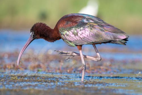 L’Ibis falcinelle est un échassier au plumage sombre aux reflets verts et pourpres, facilement reconnaissable à son long bec recourbé vers le bas. Originaire surtout du bassin méditerranéen, il est un oiseau migrateur qui remonte parfois jusqu’en Suisse lors de ses déplacements saisonniers.