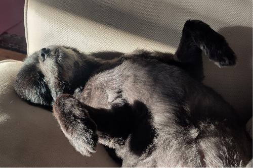 Oui mais… en m’approchant je constate que le tronc massif, couché et grossièrement évidé n’est pas fait pour les petites tailles et trop haut pour le chien.